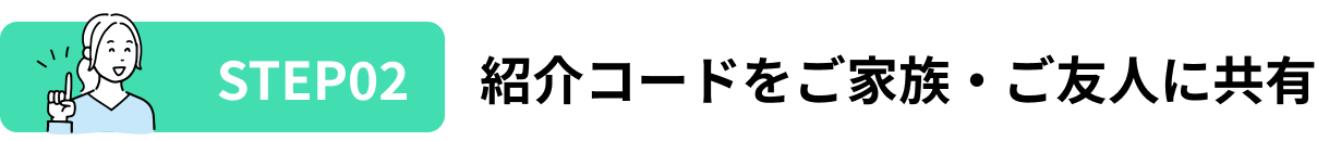紹介者の方が被紹介者に紹介コード(CHR-6桁の数字)を共有ください。