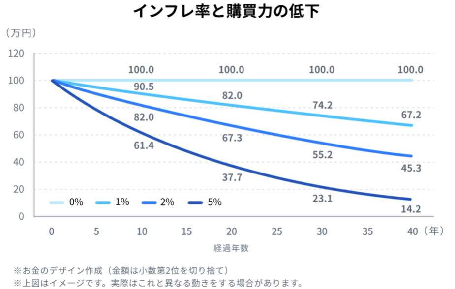 仮に毎年2%の物価上昇が10年続いた場合、1,000万円の実質的な価値は現在の820万円程度に減少してしまいます。