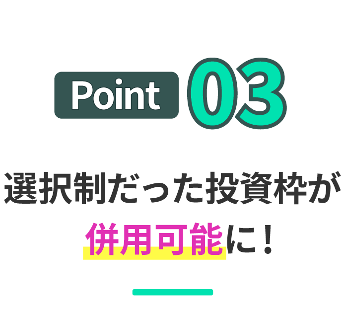 | 対象商品 | 長期の積立・分散投資に 適した一定の投資信託 (公募投信・ETF)