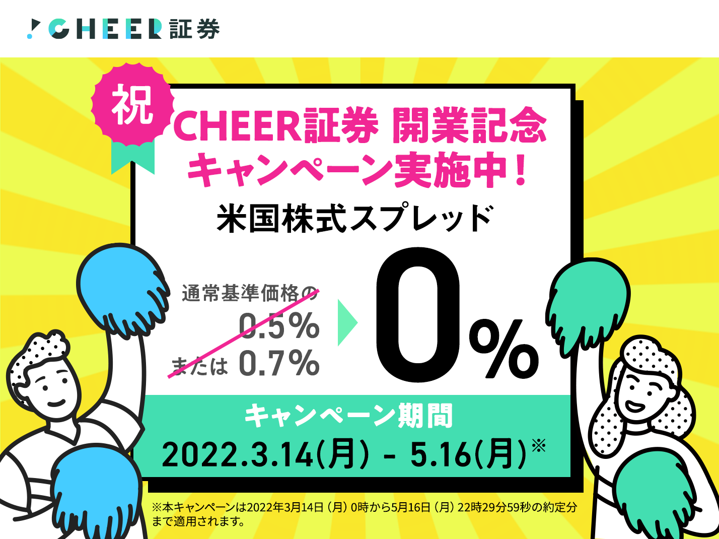 CHEER証券開業記念!もれなく米国株式・米国ETFのスプレッドが0%!