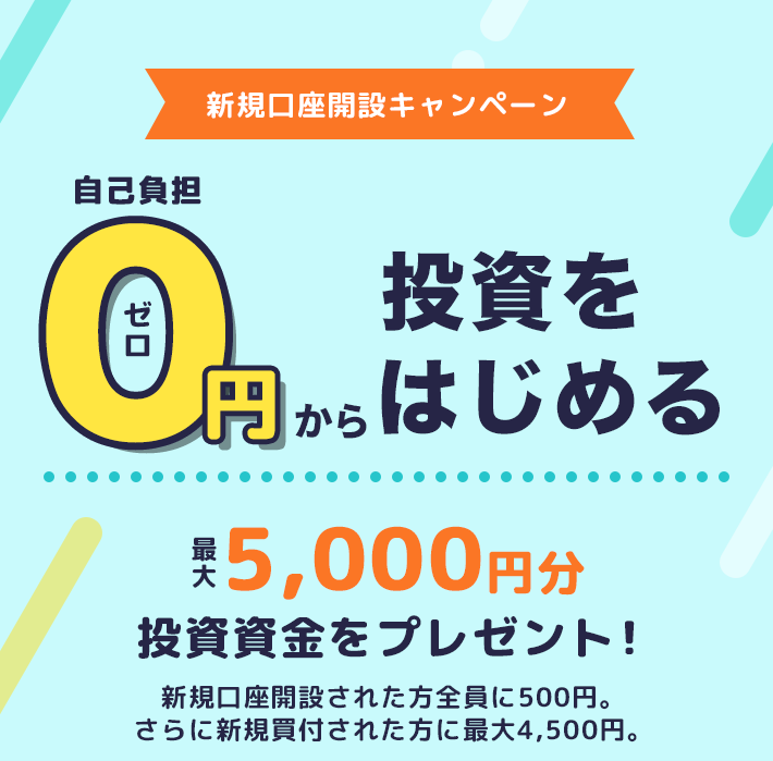 2022年8月1日(月)から新規口座開設キャンペーンを実施いたします。最大5,000円分の投資資金をプレゼントいたしますので、この機会にCHEER証券のご利用を心よりお待ちしております!